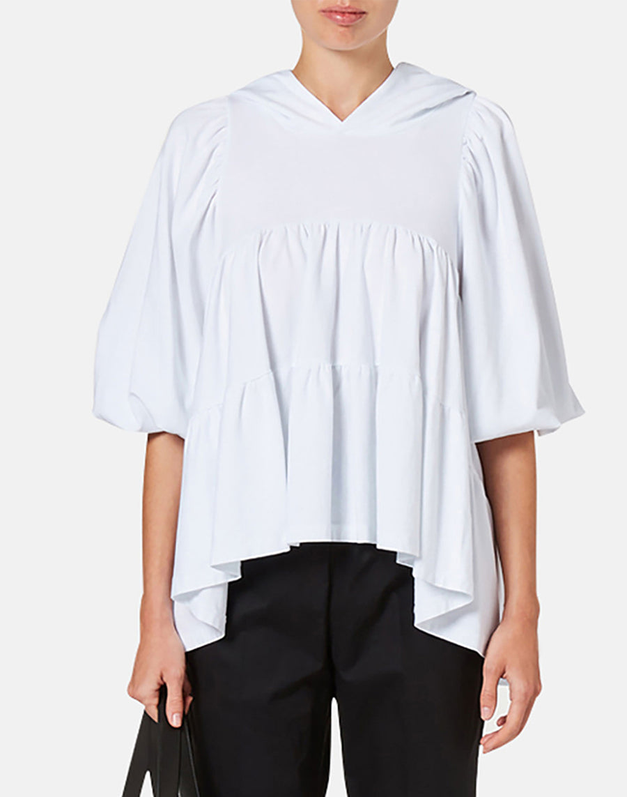Create a feminine easywear outfit with this tiered stretch cotton jersey hoodie. Perfect with jeans, shorts or trousers
