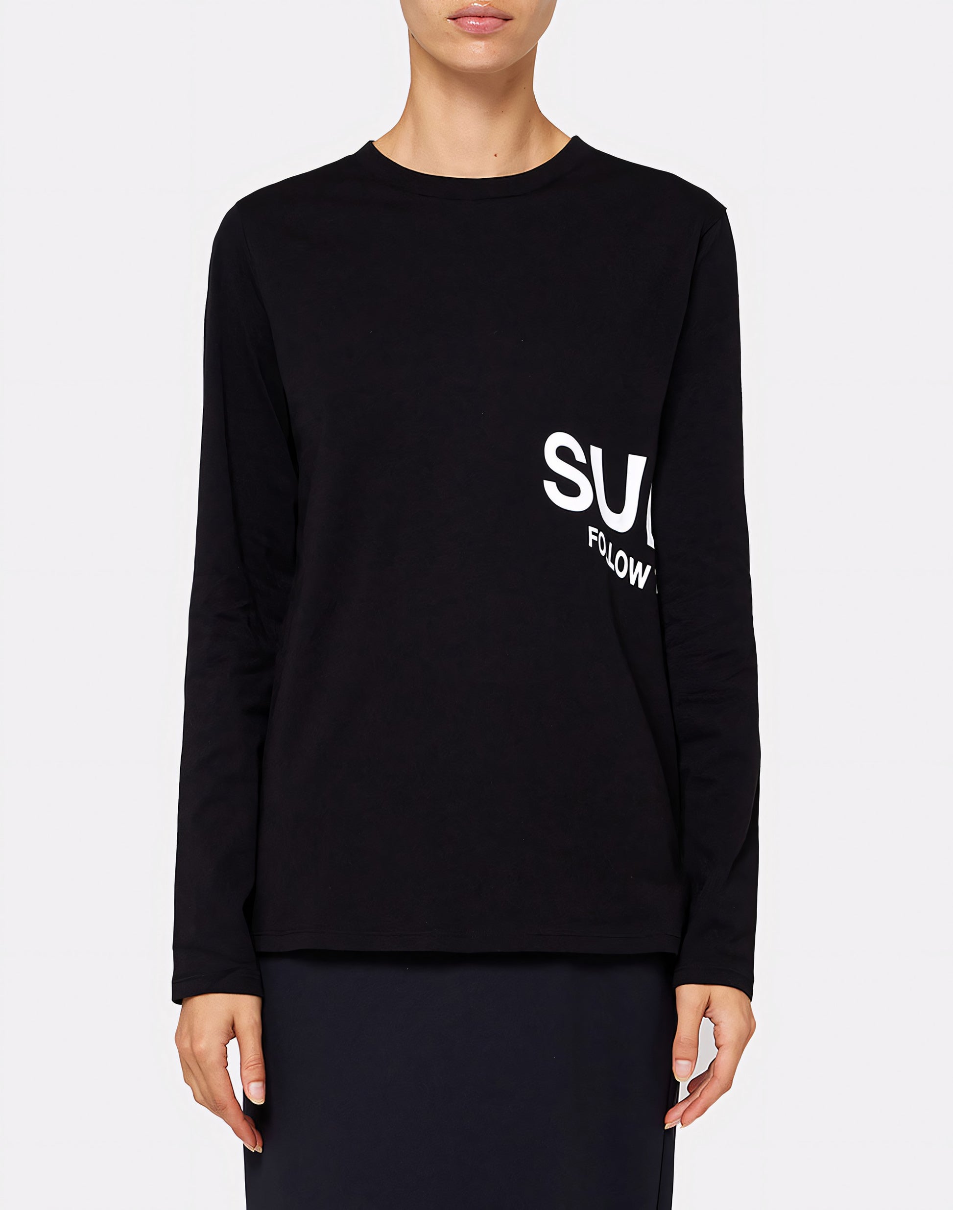 Women's long sleeve flared T-shirt with maxi Sundek slogan, for all casual and leisure time looks. Soft and comfortable, this is the T-shirt to wear from season to season, on its own or as a base for pullovers and sweatshirts: it will accompany you on trips, holidays and all occasions when you want to wear a versatile garment with personality.