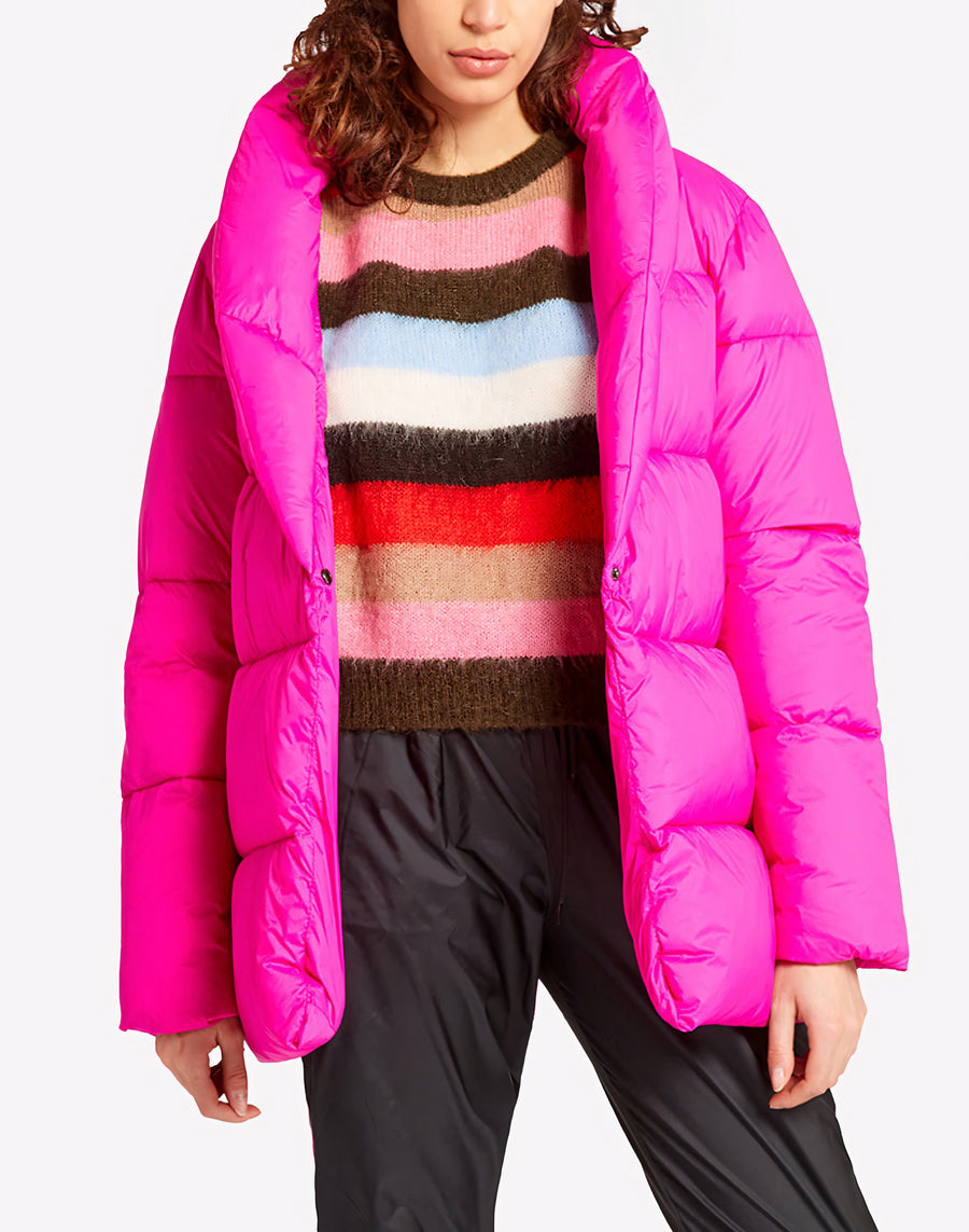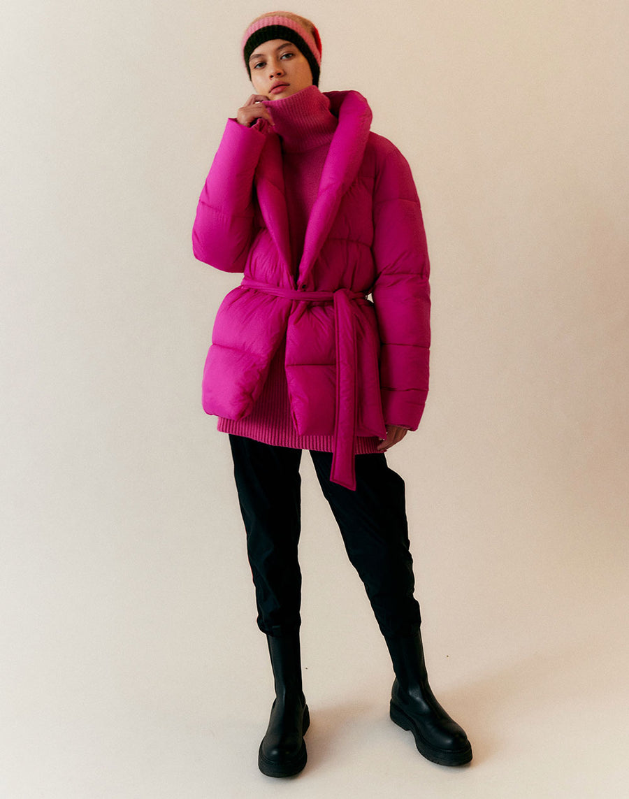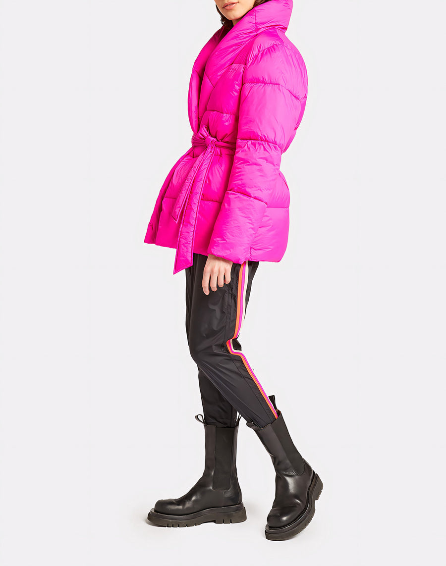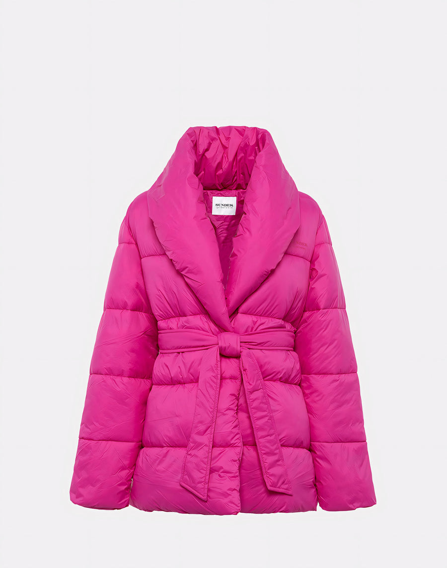 Warm and comfortable down jacket with a very enveloping kimono model belt