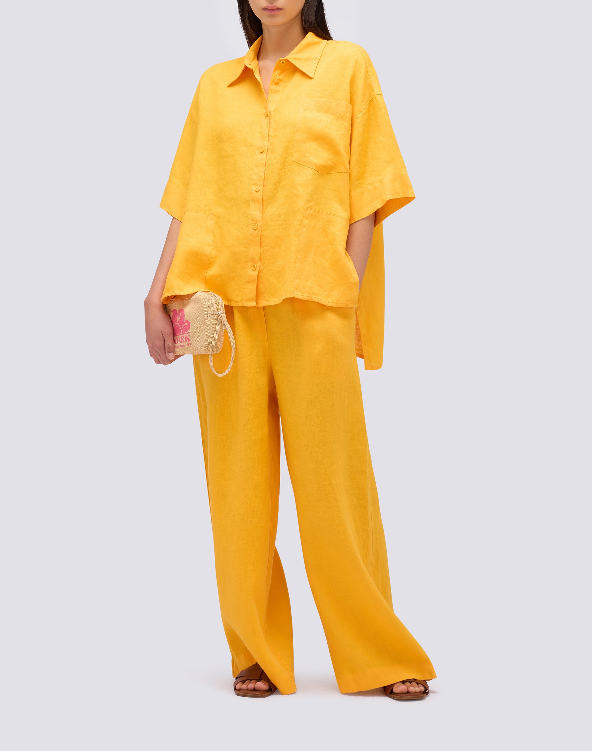 LONG PALAZZO TROUSERS IN GARMENT-DYED LINEN