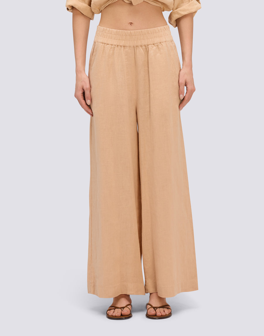 LONG PALAZZO TROUSERS IN GARMENT-DYED LINEN