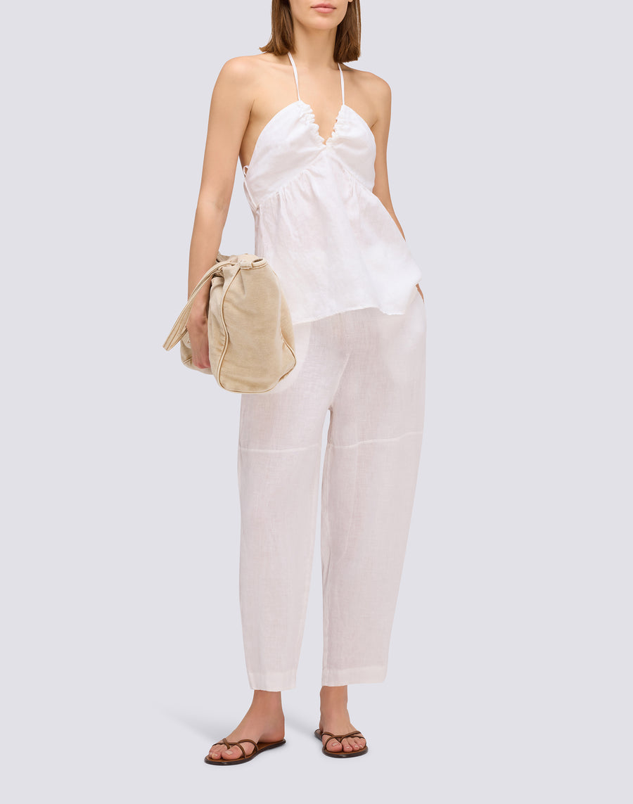 LINEN LONG TROUSERS WITH ADJUSTABLE ELASTICATED WAISTBAND