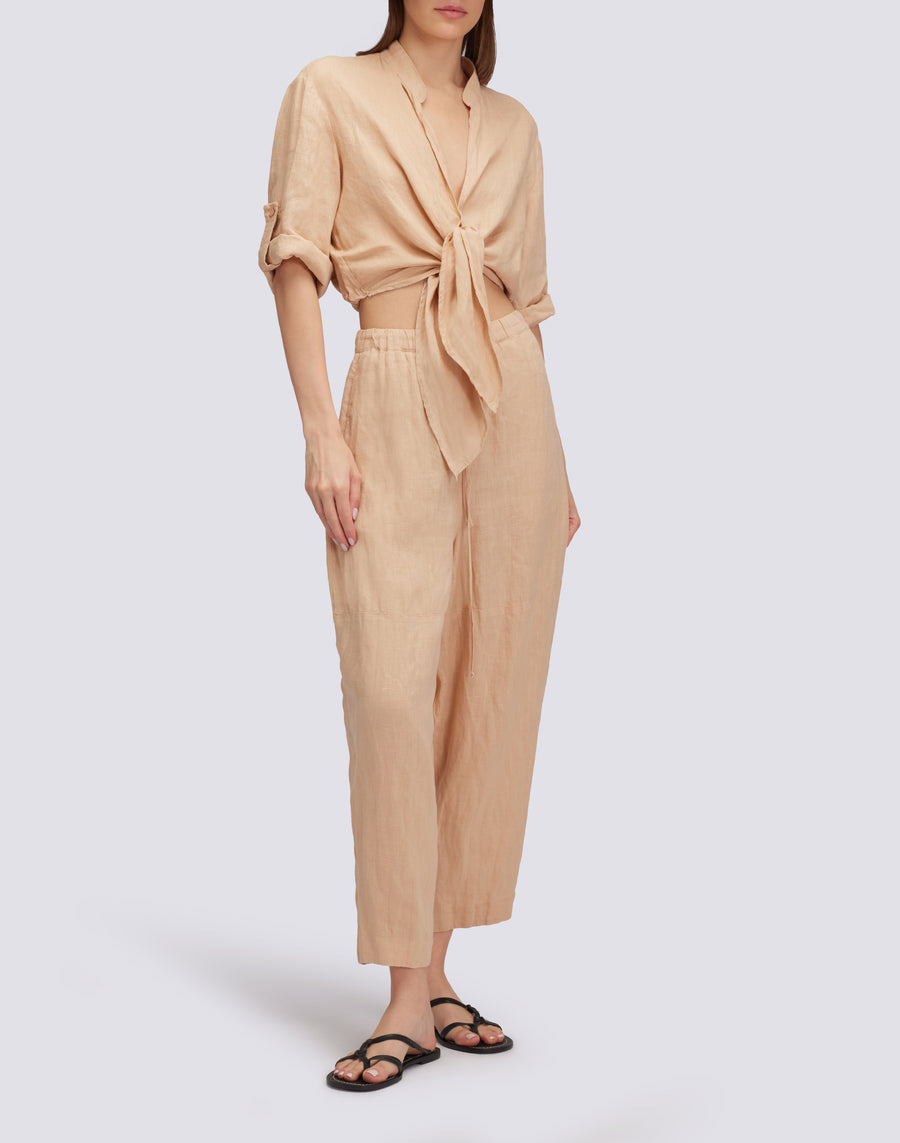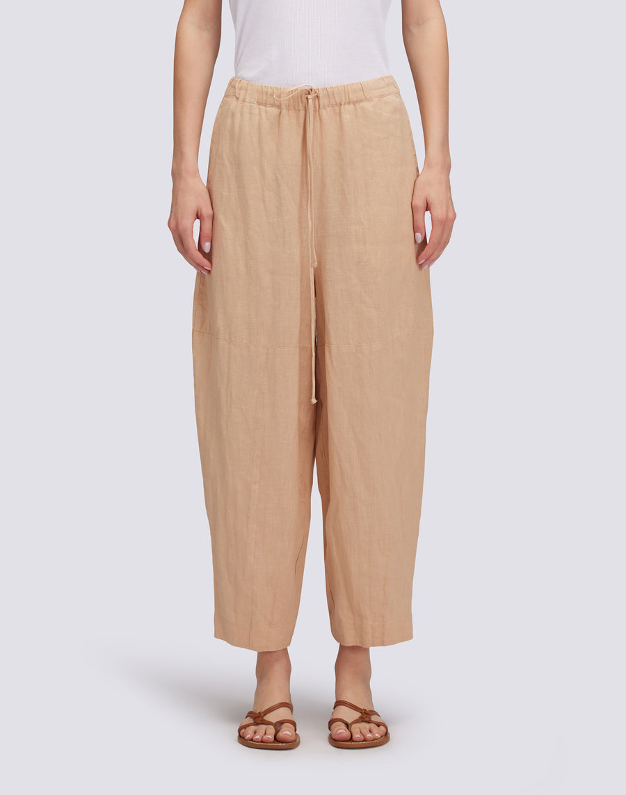 LINEN LONG TROUSERS WITH ADJUSTABLE ELASTICATED WAISTBAND