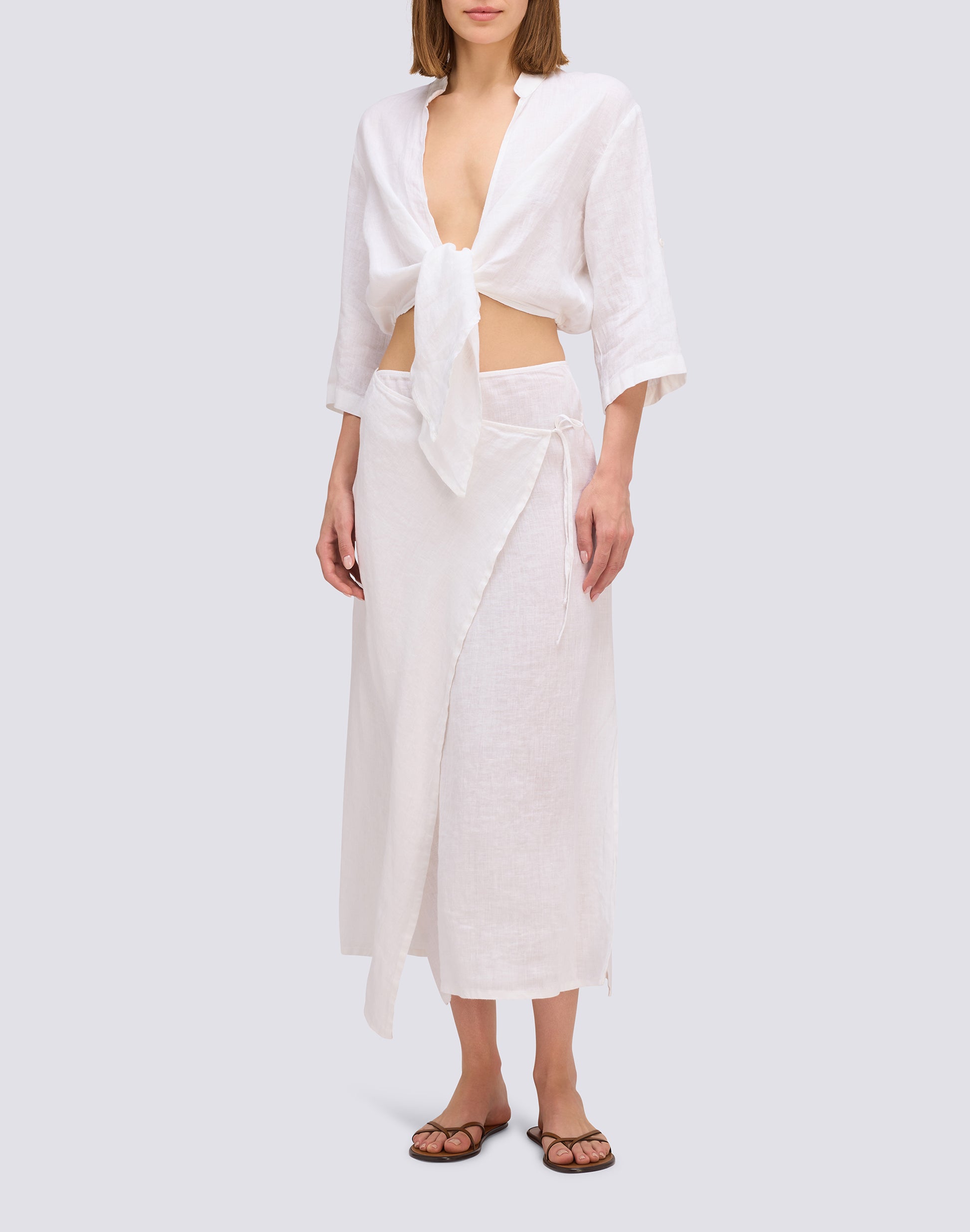 This long linen skirt is perfect for hot days thanks to its freshness and lightness. With its natural fabric, you will feel comfortable and relaxed all day long. A must-have for summer!