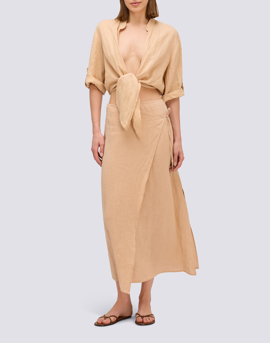 This long linen skirt is perfect for hot days thanks to its freshness and lightness. With its natural fabric, you will feel comfortable and relaxed all day long. A must-have for summer!