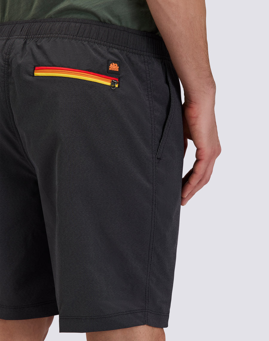 66% POLYAMIDE 29% POLYESTER 5% ELASTANE – QUICK DRY Lightweight, quick-drying, water-repellent, stretchy and super comfortable nylon-polyester blend fabric. Thanks to its technical features, it is suitable for use both in and out of the water.