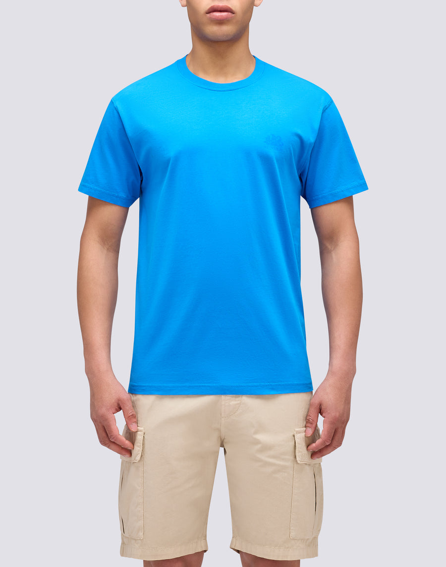A crew neck t shirt with logo to wear as and when you want, from the city, to travel, to the beach. Easy to combine with your casual looks, perfect as a base under sweaters and cardigans. The casual men's cotton t-shirt with logo is a wardrobe staple, also suitable for travel.