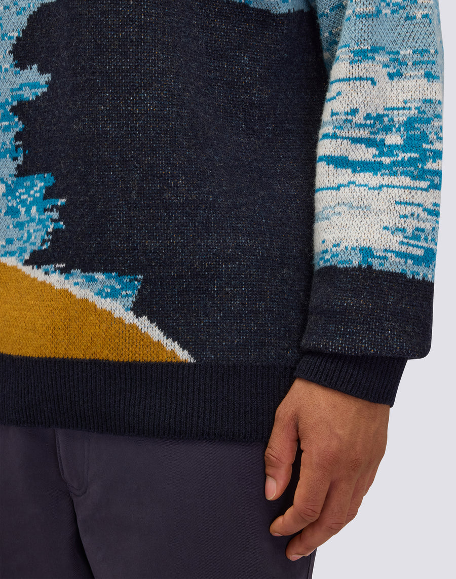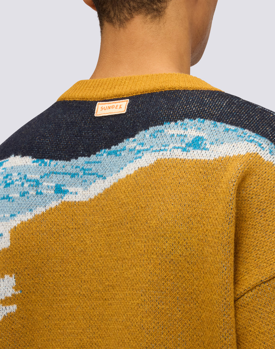 MEN'S JACQUARD SWEATER WITH V-NECK AND SEA-EFFECT COLORS