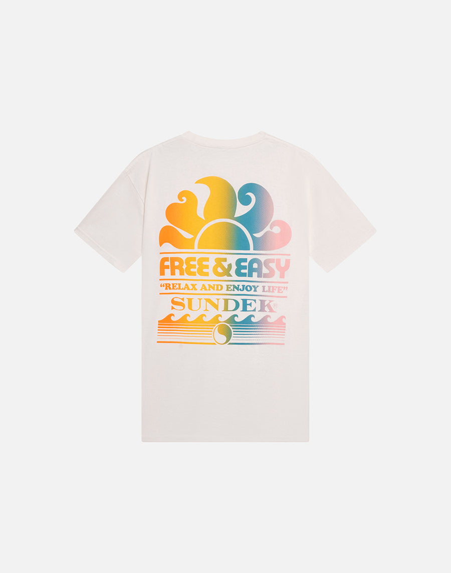 Discover the collaboration between Free&Easy and Sundek with this comfortable cotton t-shirt, characterized by a lively and colorful print. Wear this garment and immediately feel on holiday!