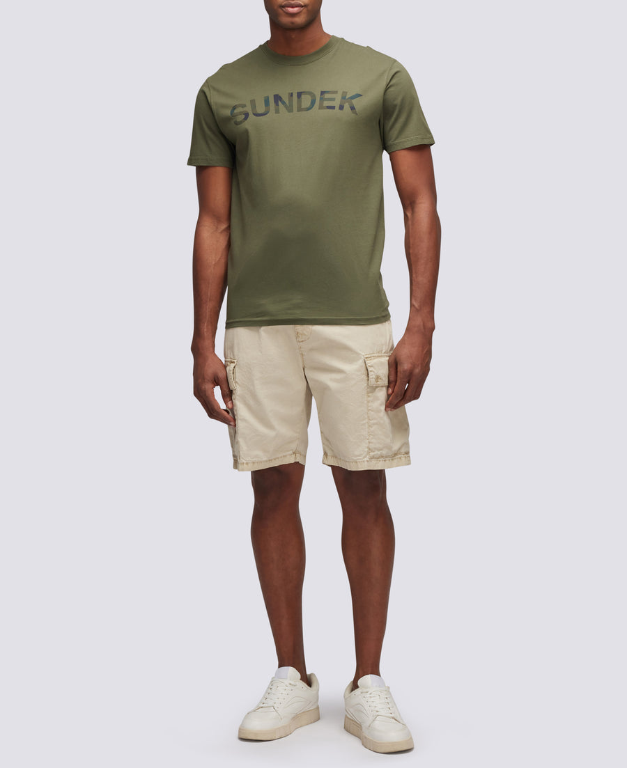 Choose everyday comfort with garment-dyed cotton cargo shorts. Equipped with side pockets, button closure and loops, they are functional and practical, suitable for different occasions. The iconic Sundek rainbow in nylon fabric crosses the back, adding style to these men's shorts.