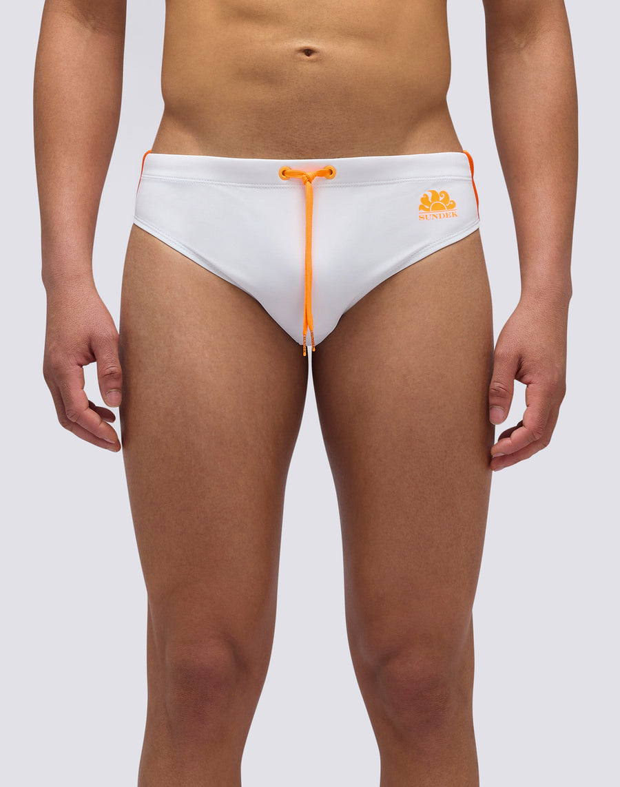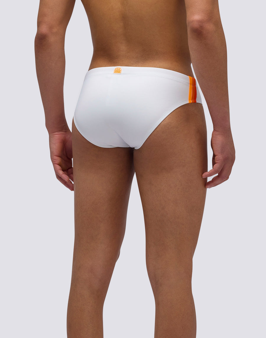 Men's plain briefs with an adjustable waistband Monochrome swim briefs with a drawstring and three contrasting stripes down the sides, combining bold style with functionality. Designed to dry quickly, they ensure comfort and durability in and out of the water.
