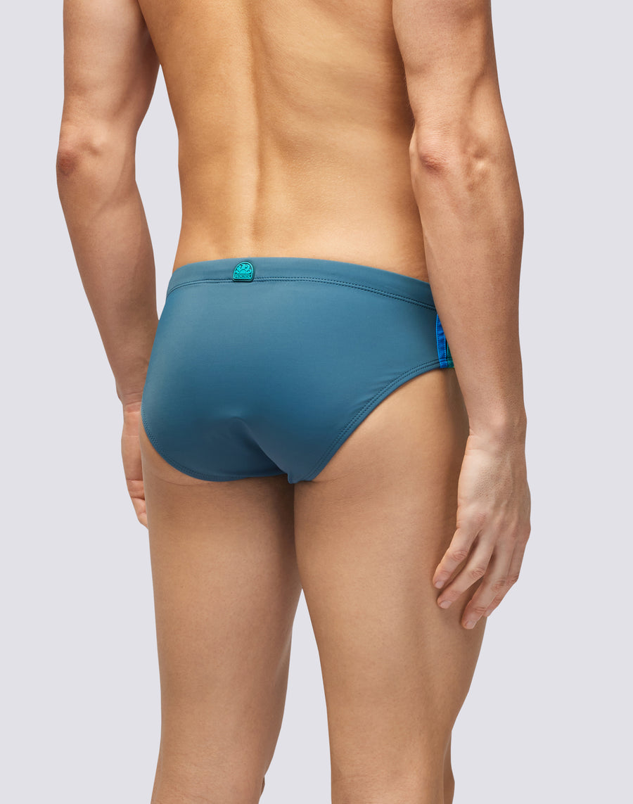 Men's plain briefs with an adjustable waistband Monochrome swim briefs with a drawstring and three contrasting stripes down the sides, combining bold style with functionality. Designed to dry quickly, they ensure comfort and durability in and out of the water.