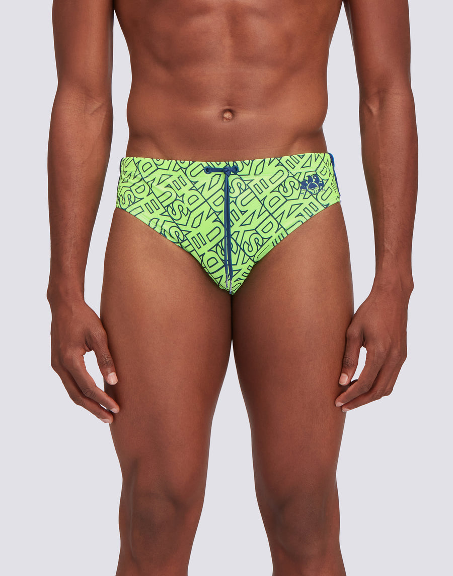 Men's swim briefs with adjustable drawstring waist and contrasting drawstring: a timeless model but with a twist given by the special print. You can wear it both for swimming and for sunbathing and tanning.
