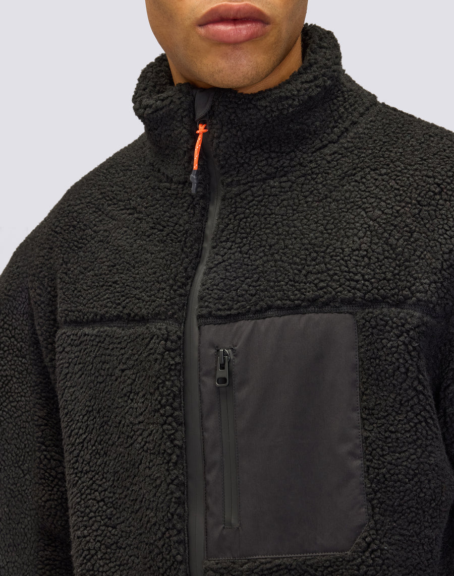 Men's short teddy jacket with a stand-up collar, finished in a lightweight, soft-touch fabric. Rich in technical details, this garment is designed for everyday functionality. Regular fit. Medium warmth.