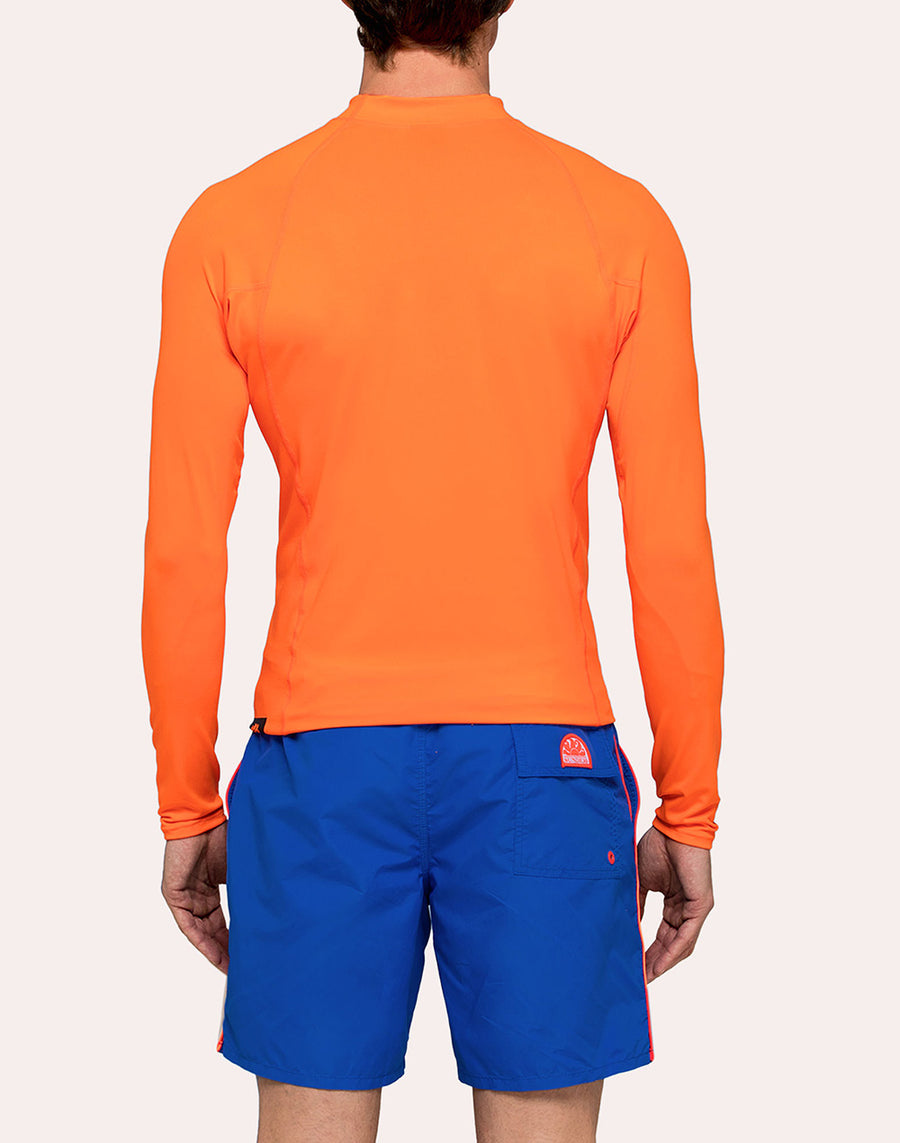 Long-sleeved, lightweight and stretchy rash guard: designed in a slim fit for optimal freedom of movement, it has a UPF of 50+. The raglan sleeves ensure good flexibility around the shoulders and arms. Offering all the comfort and protection you could loo