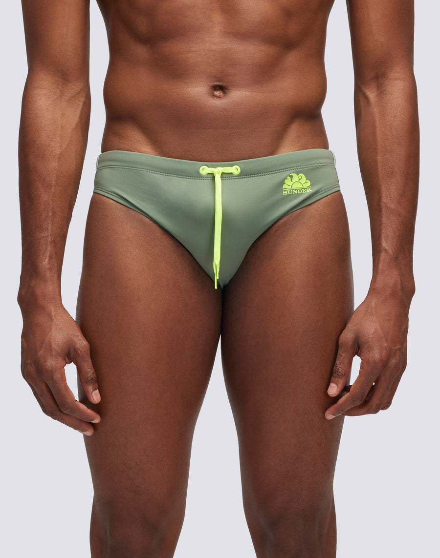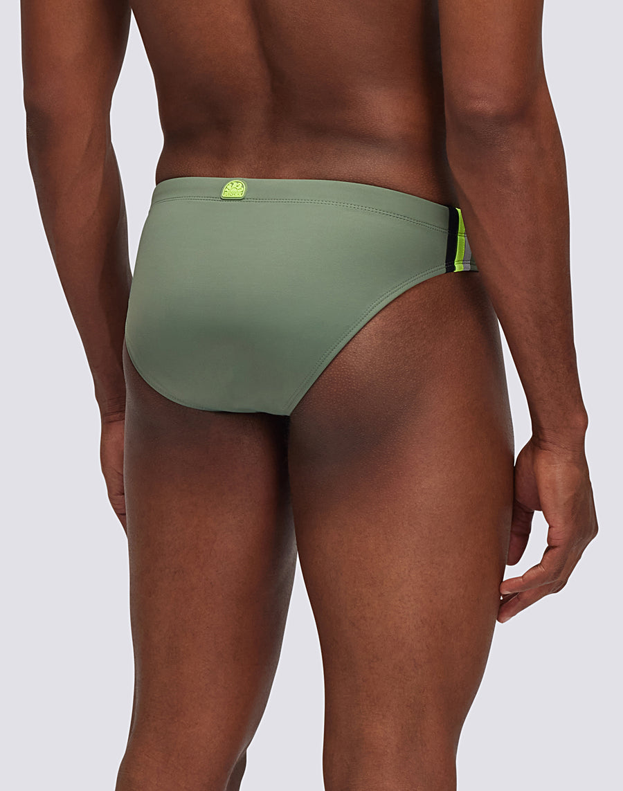 Men's plain briefs with an adjustable waistband Monochrome swim briefs with a drawstring and three contrasting stripes down the sides, combining bold style with functionality. Designed to dry quickly, they ensure comfort and durability in and out of the w