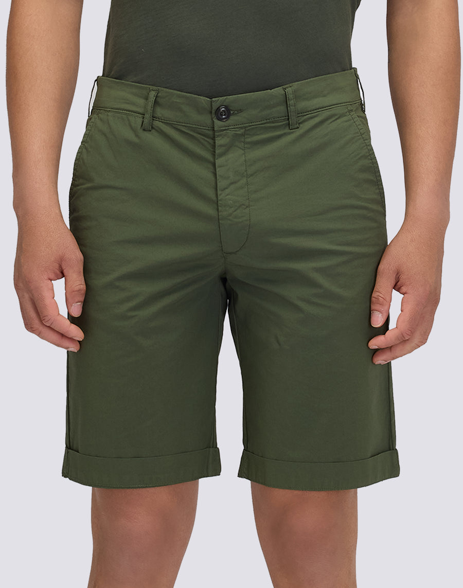 Men's walkshorts made of stretch cotton poplin, a fabric that combines lightness and durability. The garment-dyed finish ensures a deep, even color, while the elasticated waistband offers comfort and ease of movement. Perfect for those looking for versatile shorts, perfect for wearing from the beach to casual everyday wear.