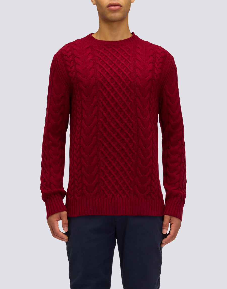 MEN'S CREW NECK SWEATER WITH CABLES IN MERINO WOOL AND CASHMERE