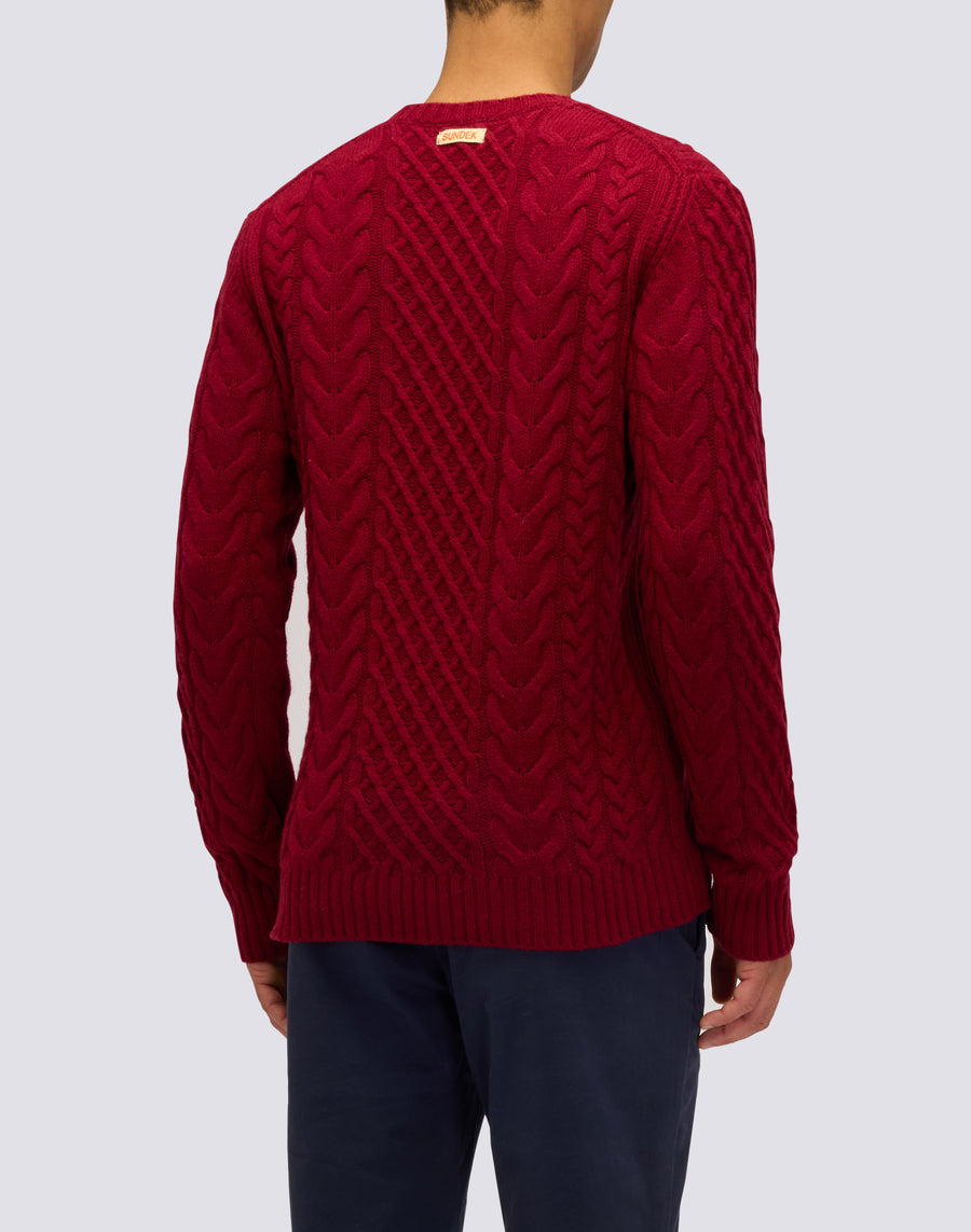 Men's crewneck sweater in a cashmere blend with a cable knit pattern; ideal for both casual and more elaborate outfits.