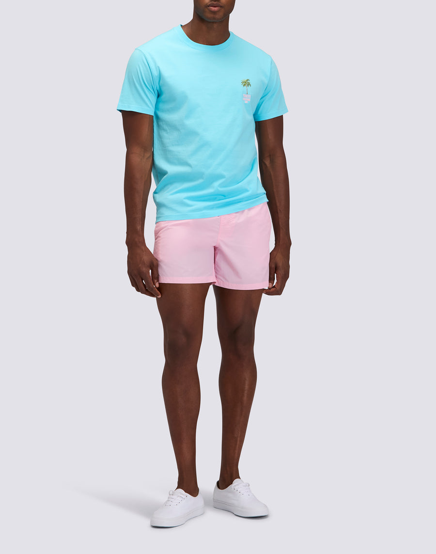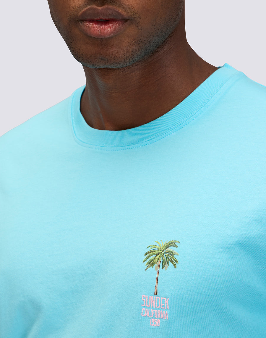 Men's cotton T-shirt with short sleeves and mini palm print and embroidered SUNDEK 1958 lettering.