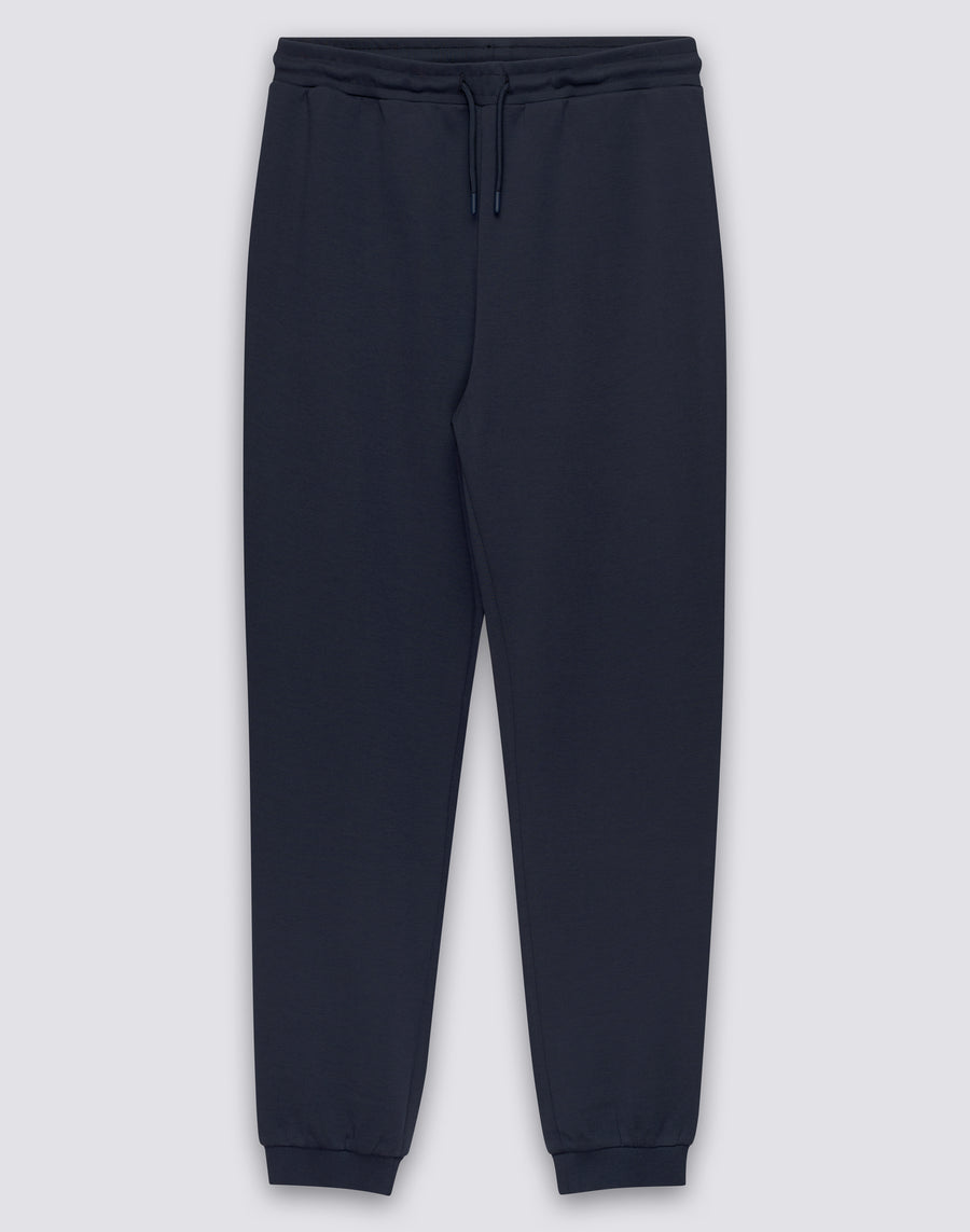 MEN'S ELASTIC WAISTED LONG TROUSERS IN RECYCLED INTERLOCK COTTON