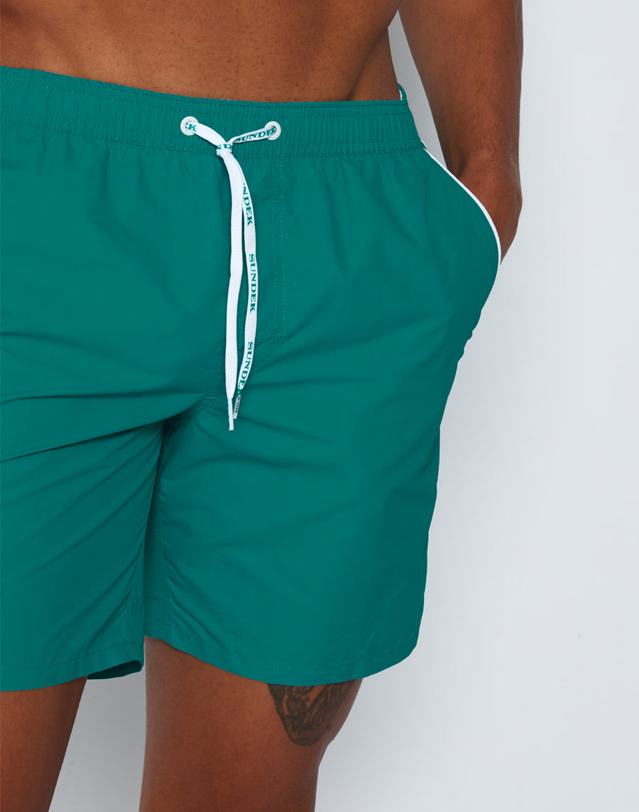 ICONIC TAFFETA STRETCH WAIST MID-LENGTH SWIM TRUNKS