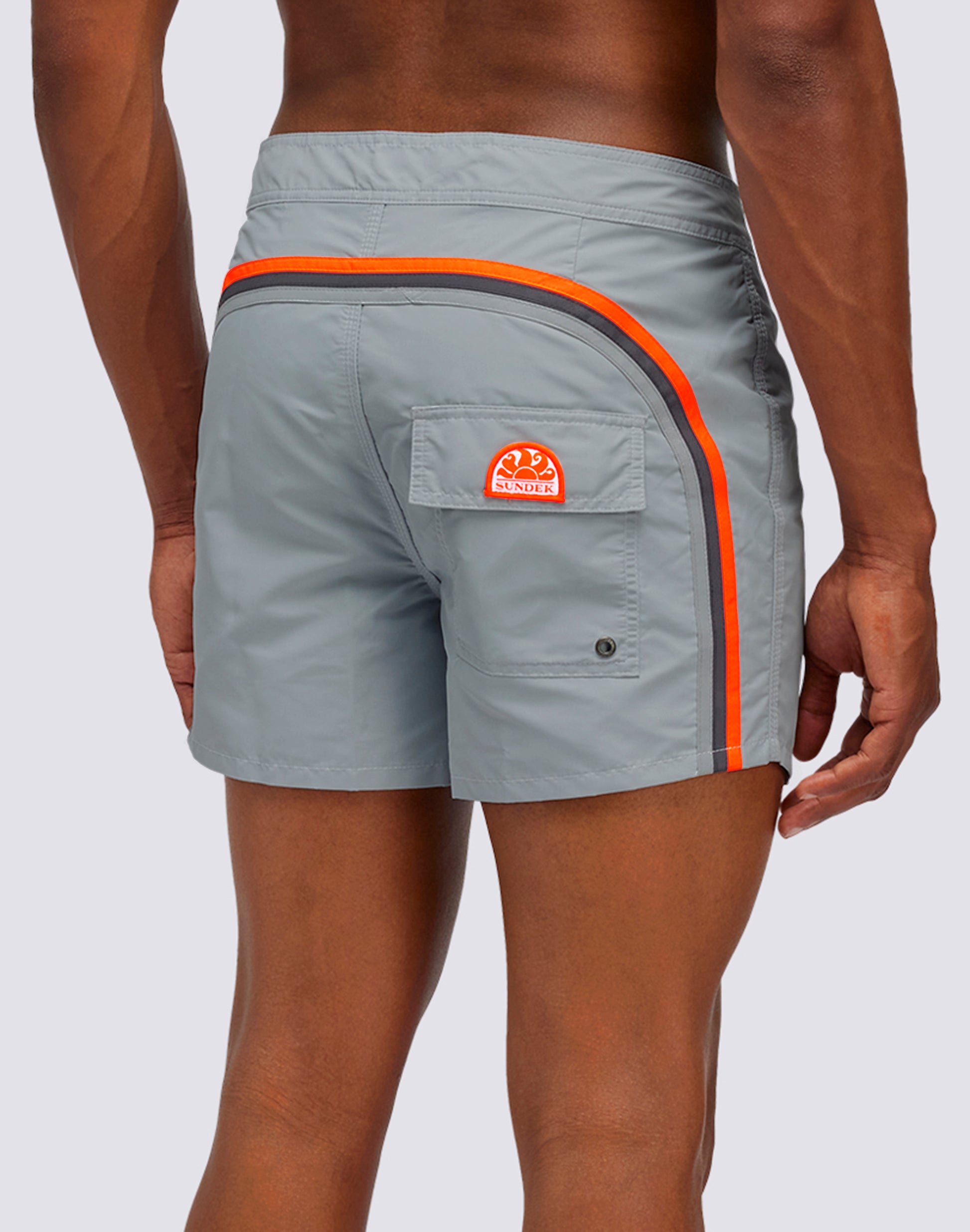 Vibrant energy, intense color and the iconic Sundek rainbow peeking out for this men's boxer shorts. It's made from our heritage nylon taffeta fabric, with a comfortable, quick-drying silky feel, while three-needle stitching makes it durable vacation after vacation. Length 35 cm (size M), measured on the outside of the leg.