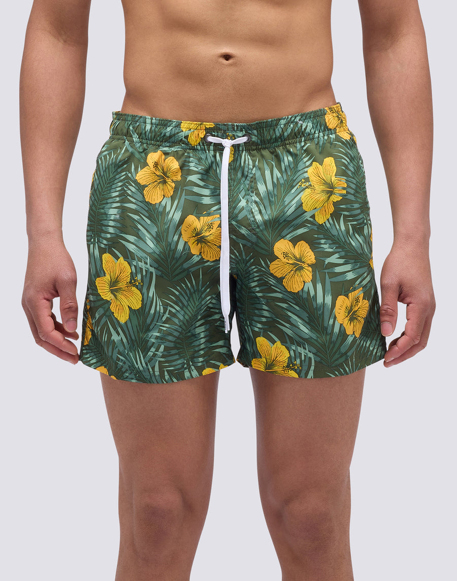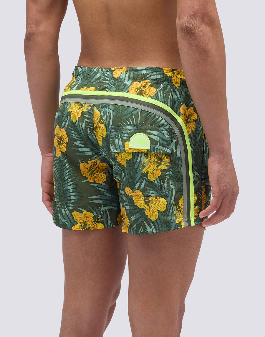 SHORT SWIMSHORTS WITH ELASTIC WAIST AND CLASSIC FLOWER PRINT