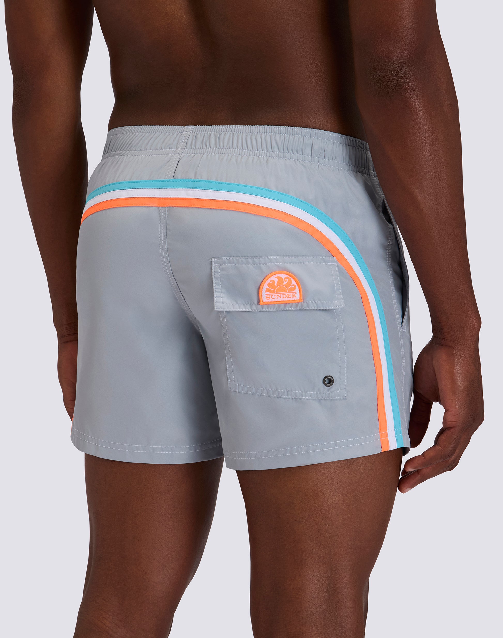 L'inconfondibile arcobaleno a tre colori Sundek sul retro