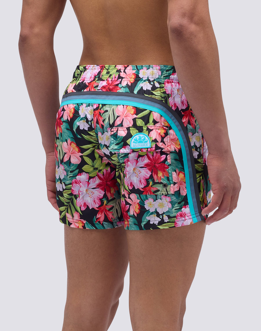 SHORT SWIMSUIT WITH ELASTIC WAIST AND BORA BORA PRINT