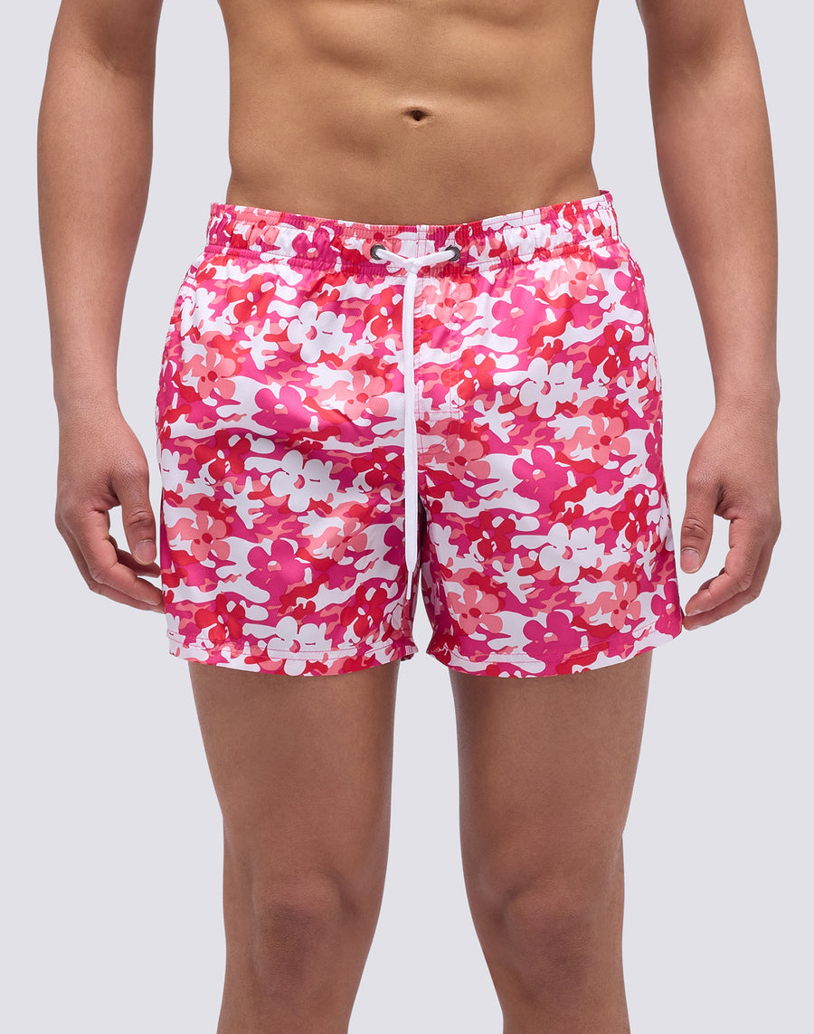 SHORT SWIMSUIT WITH ELASTIC WAIST AND CAMOFLOWER PRINT