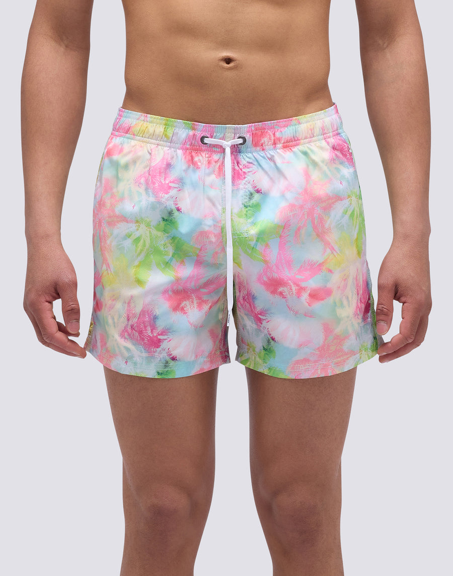 SHORT SWIMSUIT WITH ELASTIC WAIST AND MISTY PALMS PRINT
