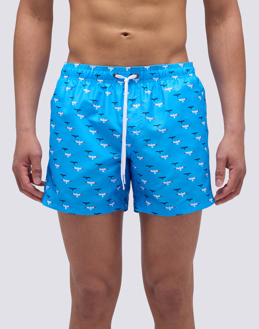 SHORT SWIMSUIT WITH ELASTIC WAIST IN RECYCLED POLYESTER WITH SEAGULL PRINT