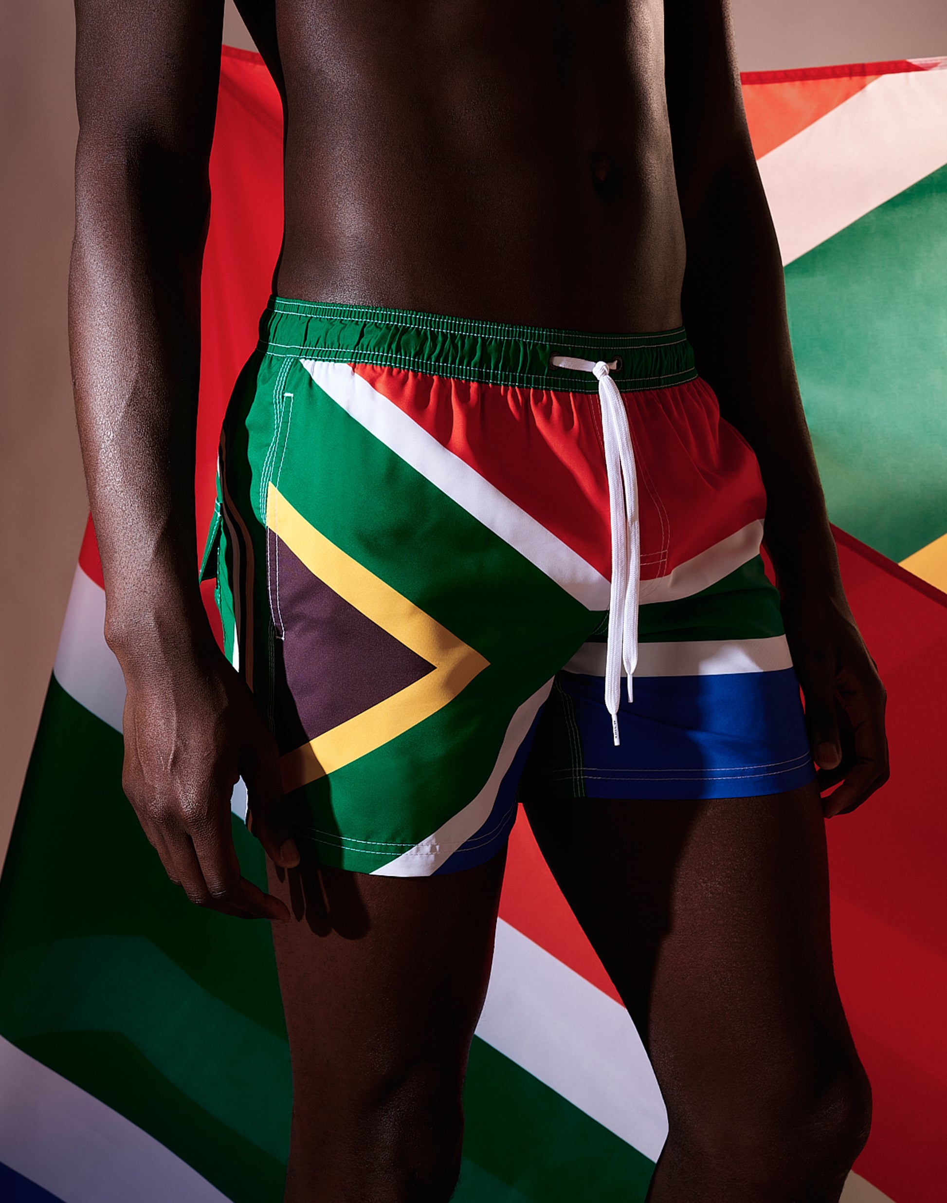 SHORT SWIM SHORTS WITH AN ELASTICATED WAISTBAND RECYCLED POLYESTER REPREVE® SOUTH AFRICA FLAG