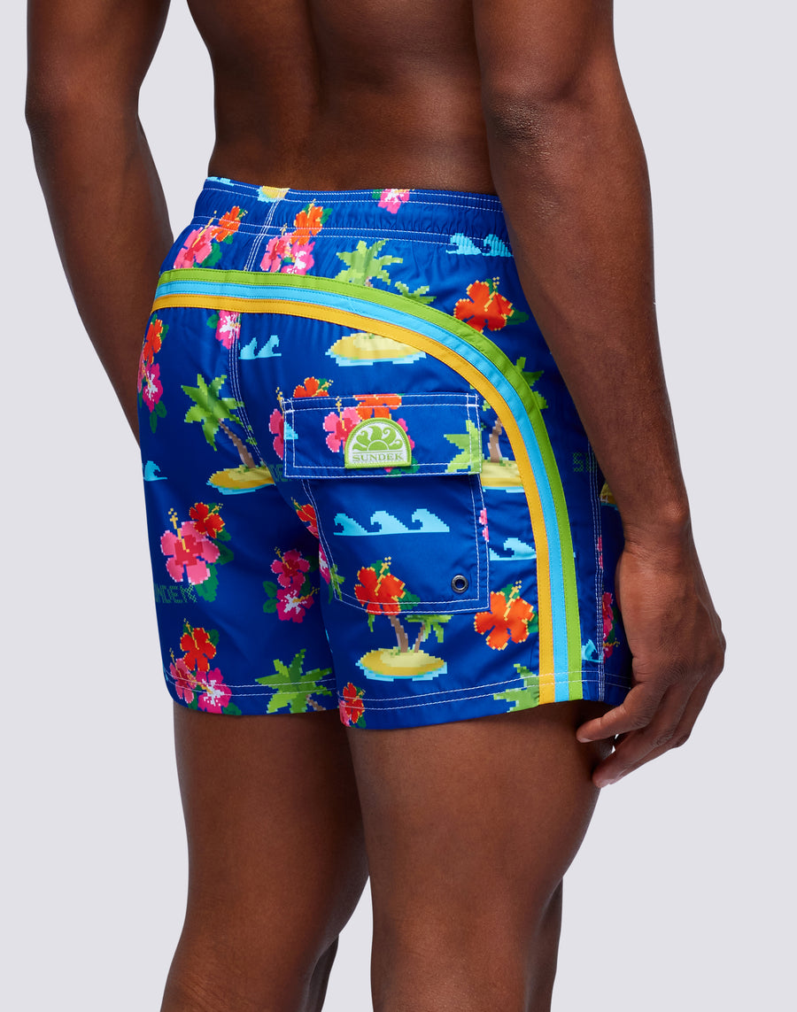 SWIM SHORTS PRINT HIBIXEL REPREVE®