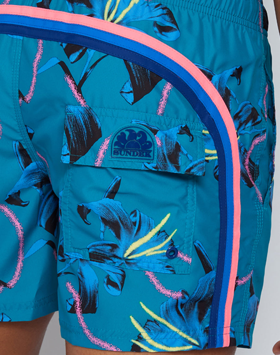With green fabric, a flower-inspired design and the iconic Sundek rainbow on the back, this swimsuit is a beach must-have: thanks to its recycled REPREVE® fabric, made from plastic bottles, it is lightweight, durable and dries quickly.