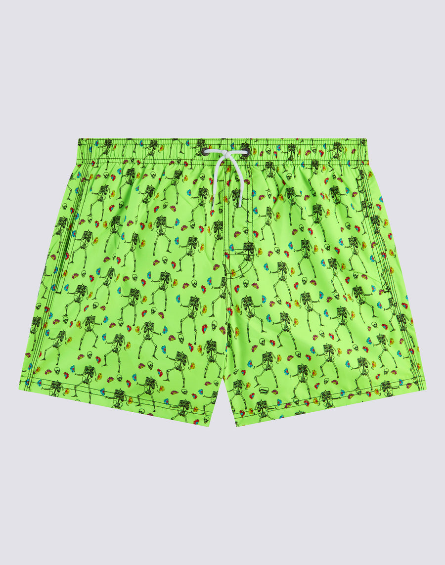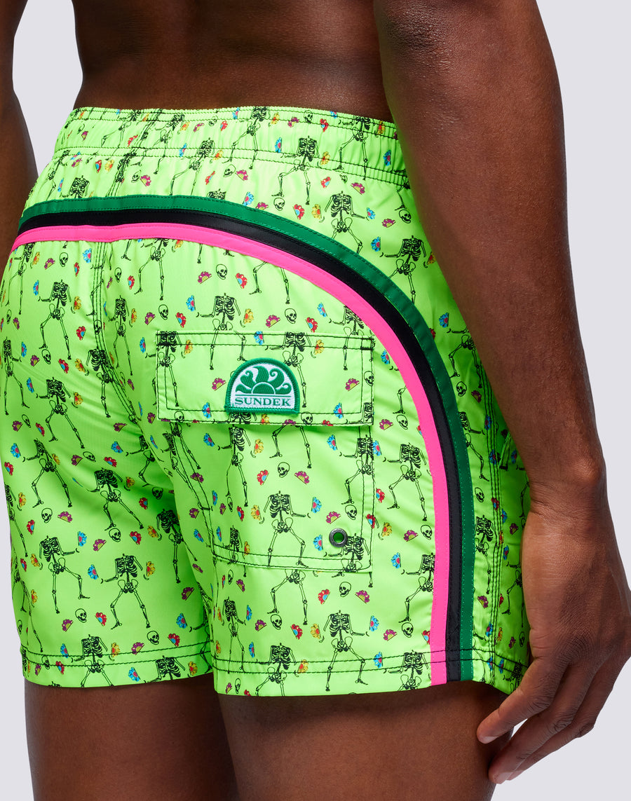 Swim trunks with elasticated drawstring waistband, in lightweight recycled Repreve® fabric made of plastic bottles. Iconic rainbow detail on the back and Skeleton Bay microprint. Outseam 14"/35 cm (size m).