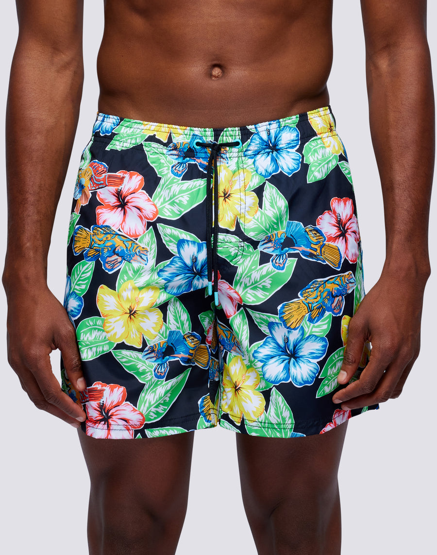 REPREVE® ELASTICATED WAIST MEDIUM SWIMSHORTS WITH ANIMAL FISH PRINT