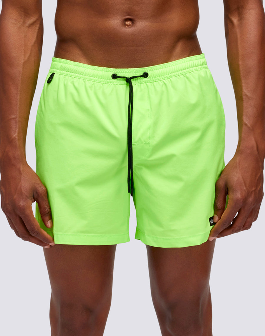 Follow the waves with the short men's swimsuit with an elastic waist in solid color and bright colours. Lightweight, resistant, dries very quickly and is made of 4 Way Stretch fabric. It has our classic three-needle stitching that increases durability and our iconic rainbow on the back.