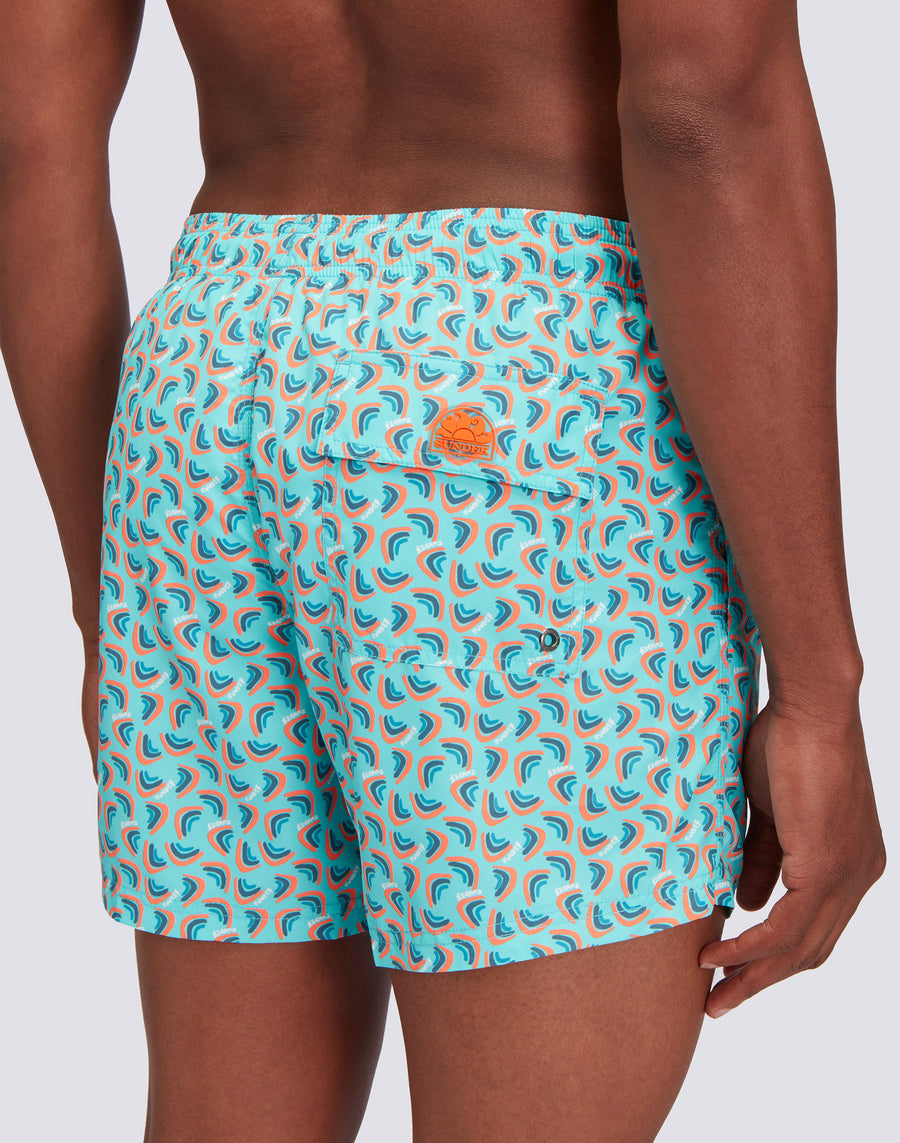 RECYCLED POLY SHORT SWIMSHORTS WITH ELASTIC WAIST RAINBOWS PRINT