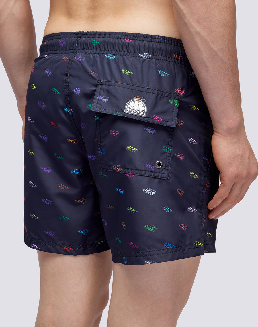 RECYCLED POLY SHORT SWIMSHORTS WITH ELASTIC WAIST MONOGRAM PRINT