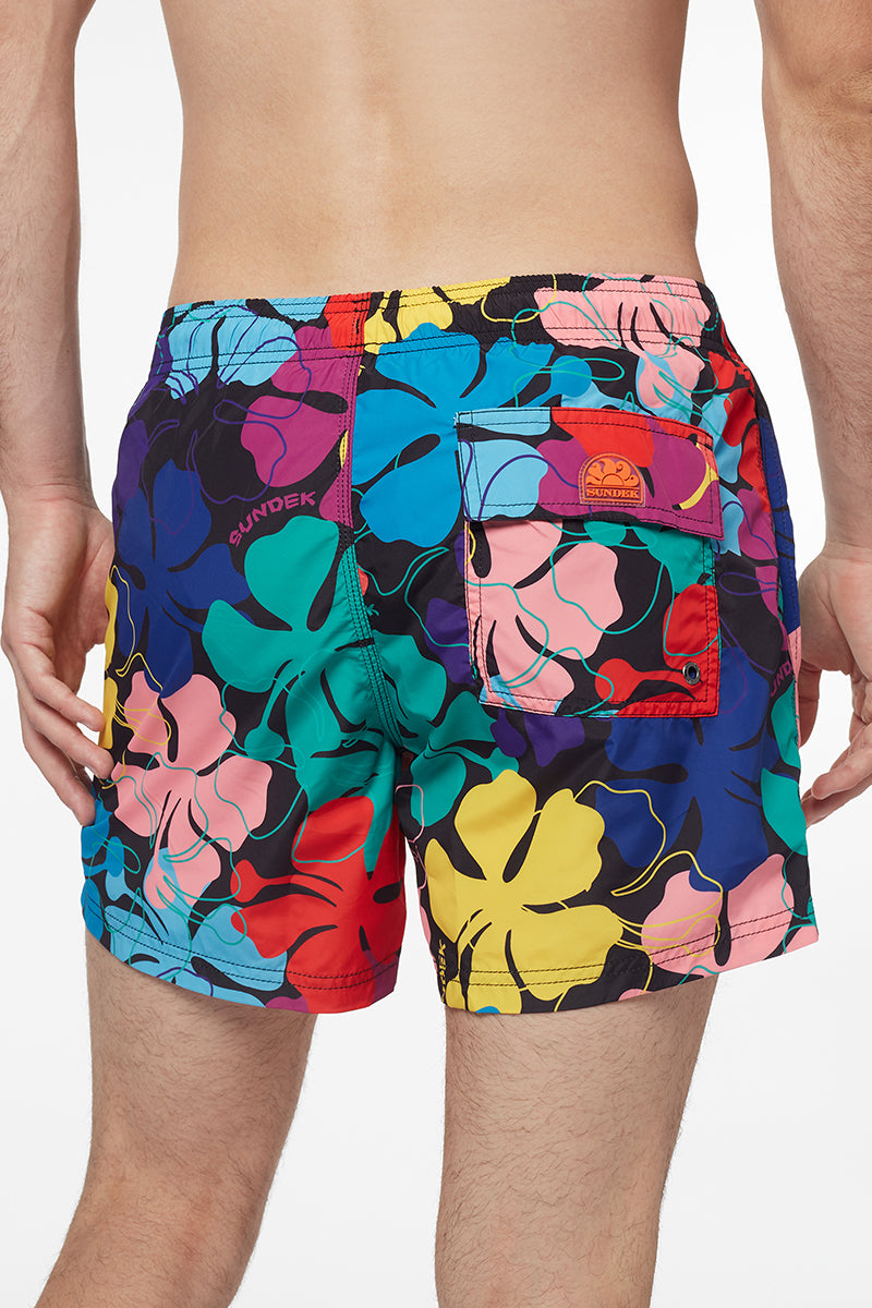 Ready to ride the next wave with this men's vorto swim trunks with elasticated waist and colorful hiby pop print. Made of light recycled polyester, it guarantees adherence and comfort thanks to the presence of the drawstring and the elastic waistband. Length 14”/35 cm (in size M).