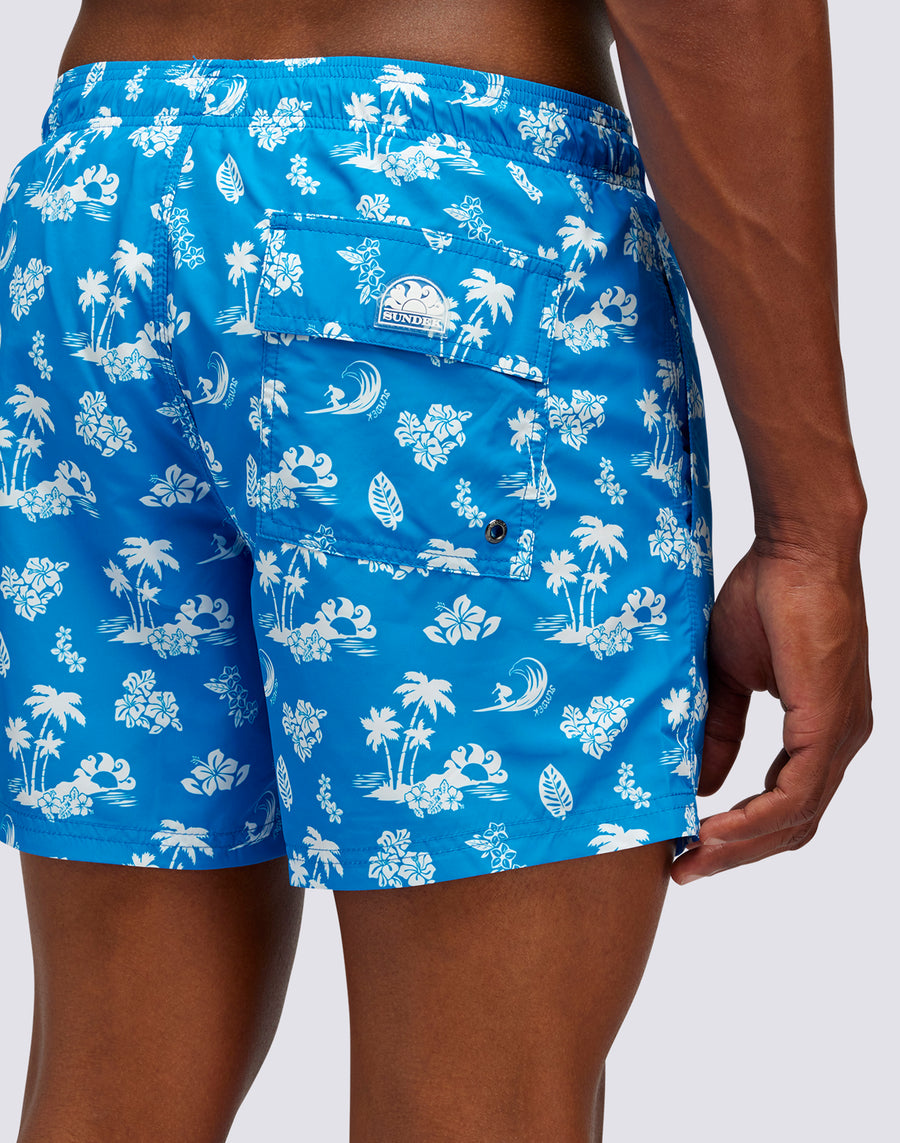 RECYCLED POLY SHORT SWIMSHORTS WITH ELASTIC WAIST KAILUA BIT PRINT