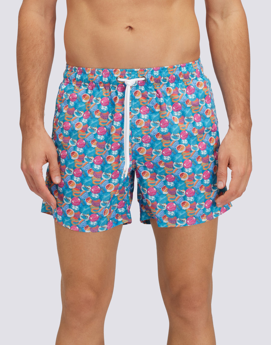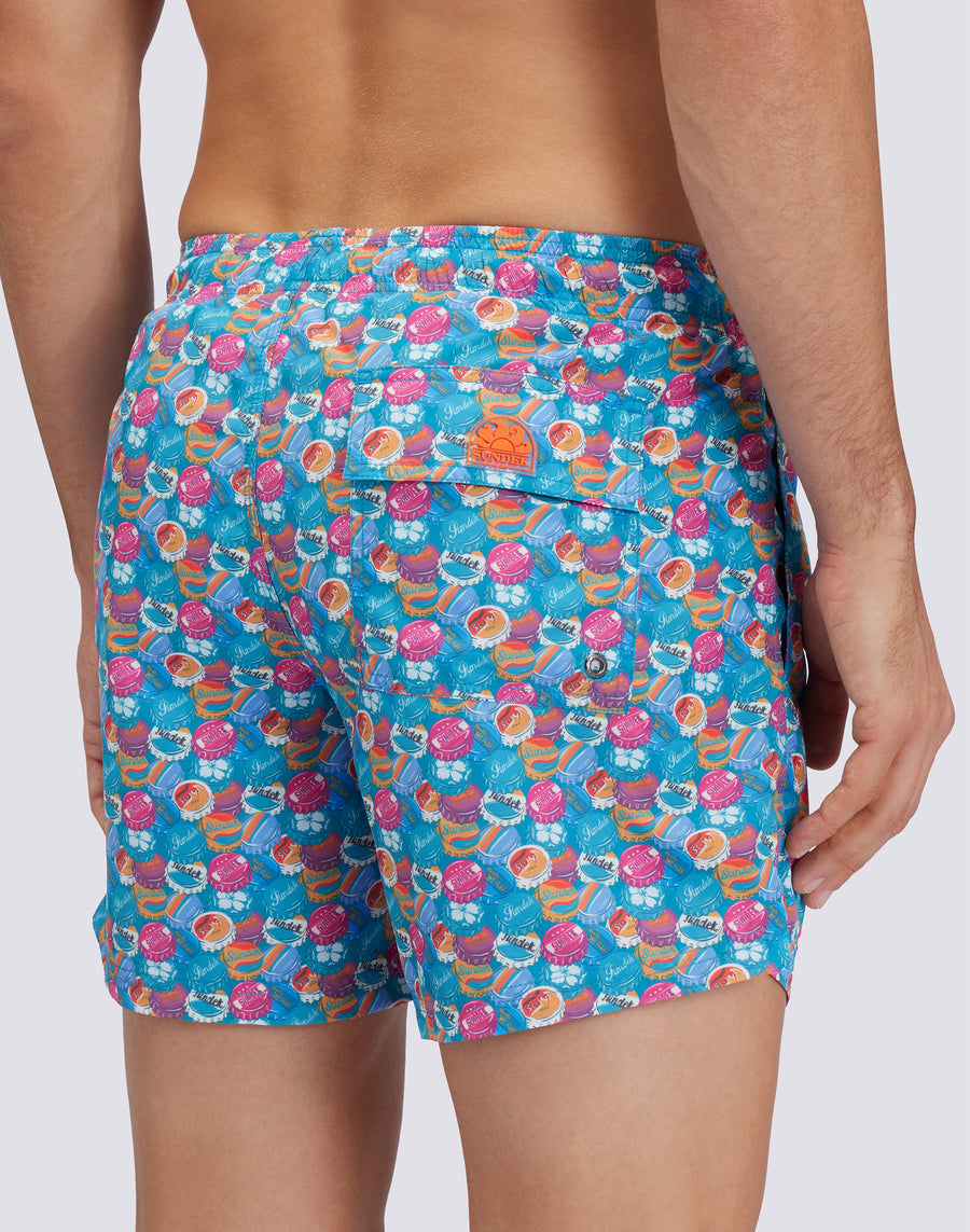 RECYCLED POLY SHORT SWIMSHORTS WITH ELASTIC WAIST SUNCAP PRINT