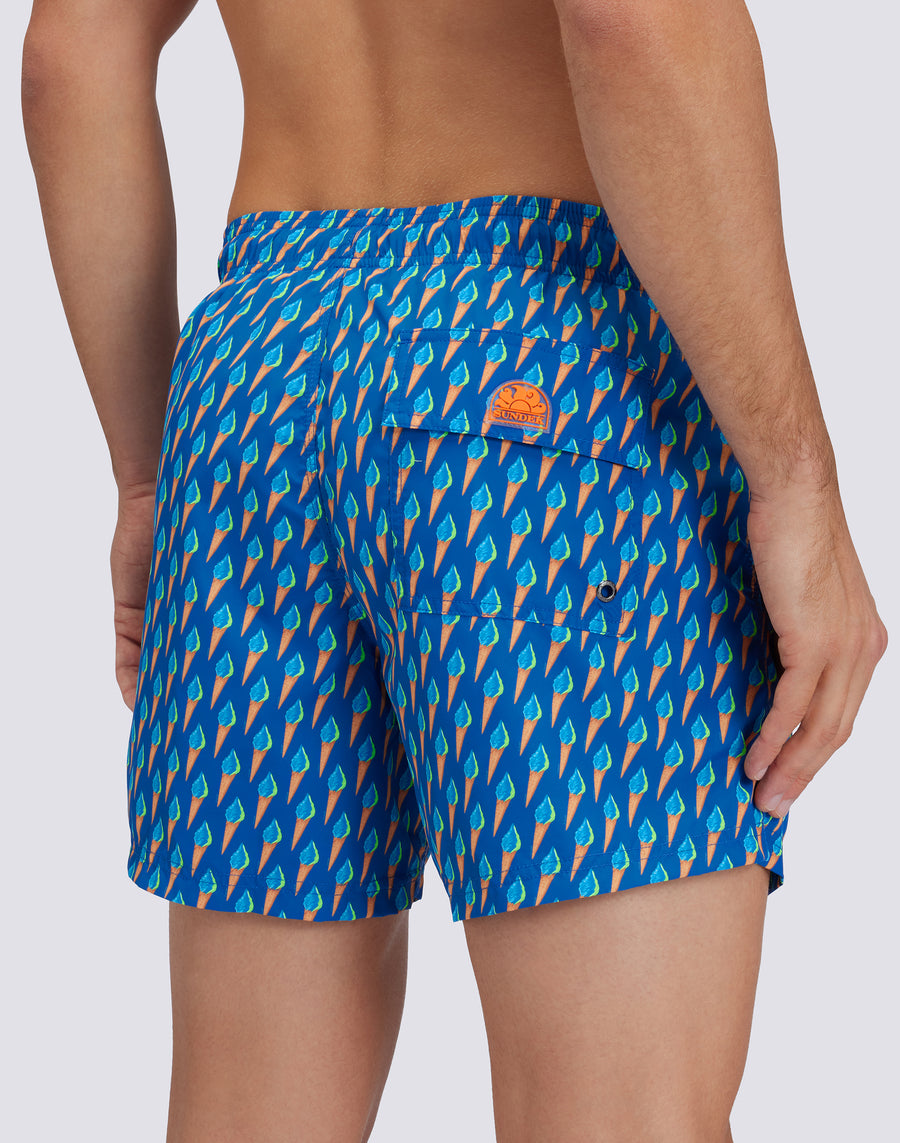 RECYCLED POLY SHORT SWIMSHORTS WITH ELASTIC WAIST SUNICE PRINT