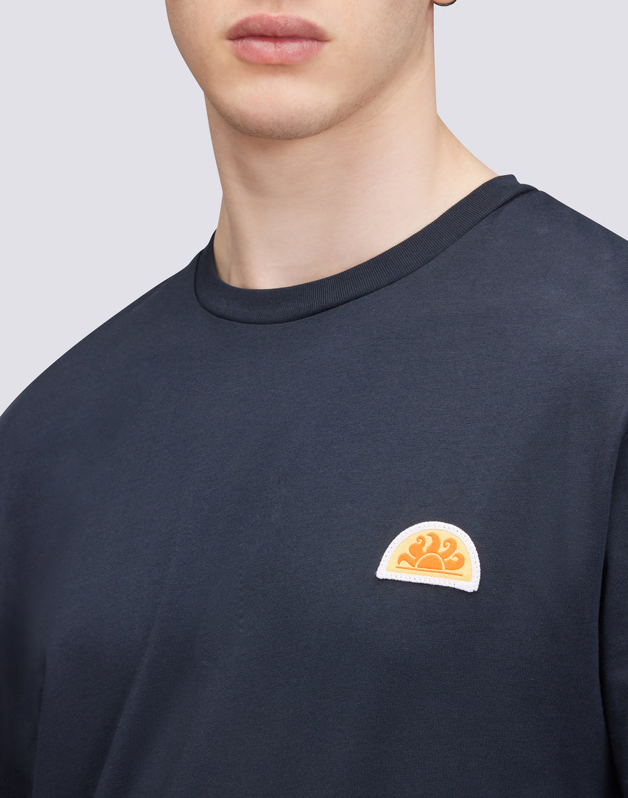 Men's plain half-sleeved T-shirt, embellished with archive logo patch. Regular fit.