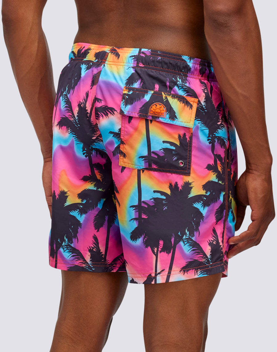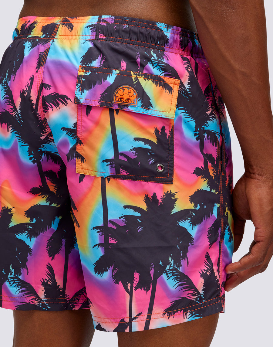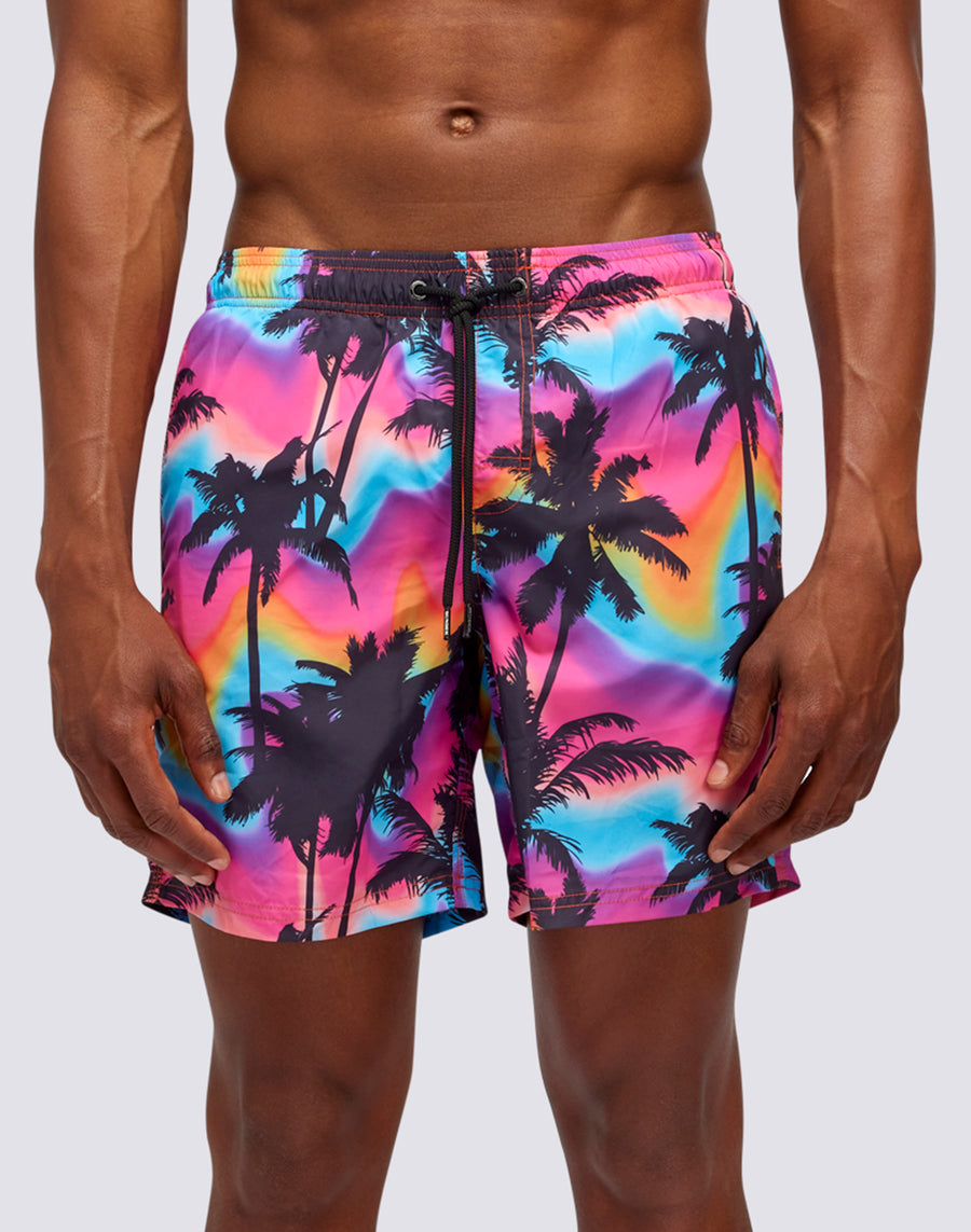 MEDIUM SWIMSHORTS ELASTIC WAIST PALM PRINT IN RECYCLED POLY