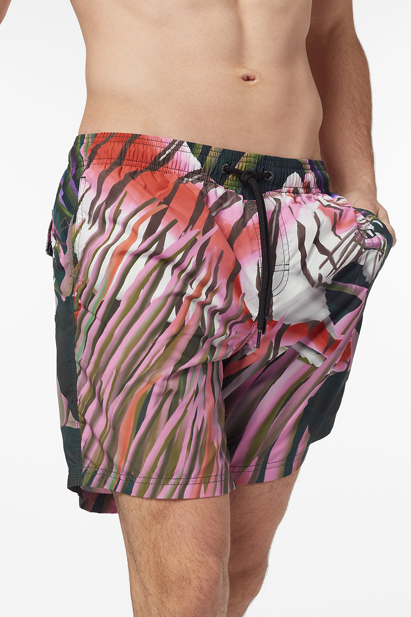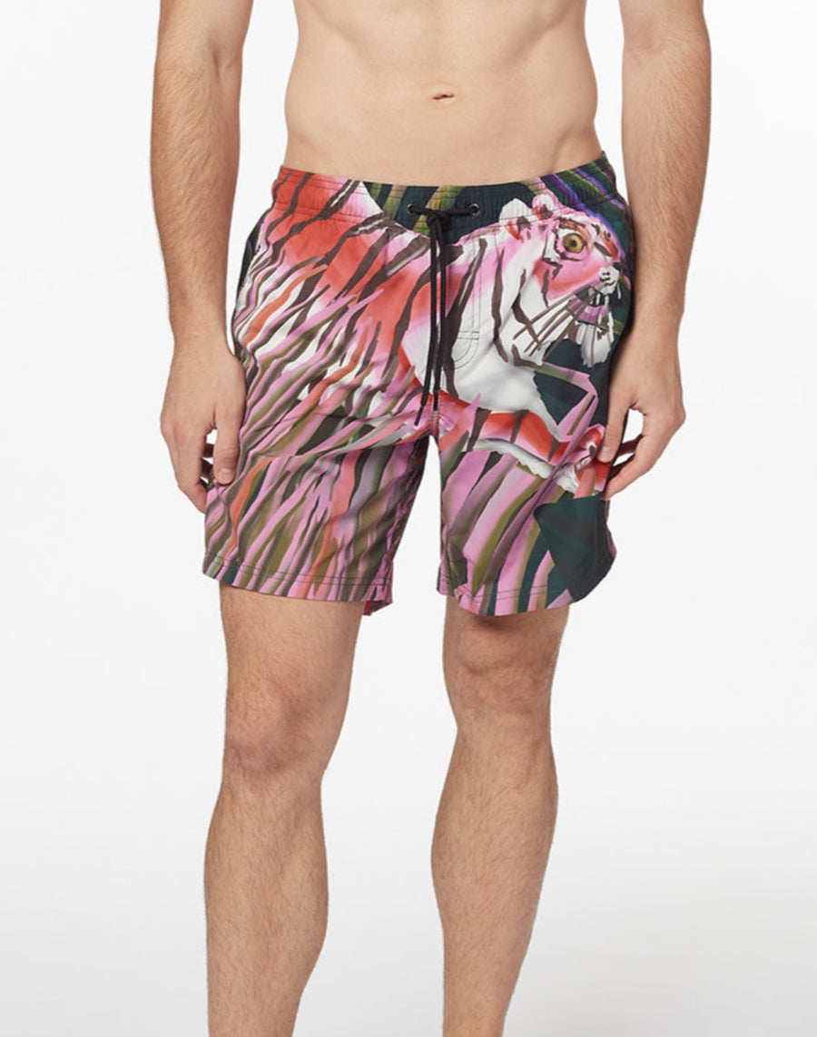 Get ready to ride the next wave in this Savannah print mid-rise elasticated waist men's swim trunks. Made of light recycled polyester, it guarantees adherence and comfort thanks to the presence of the drawstring and the elastic waistband. Length 16”/41 cm (in size M).