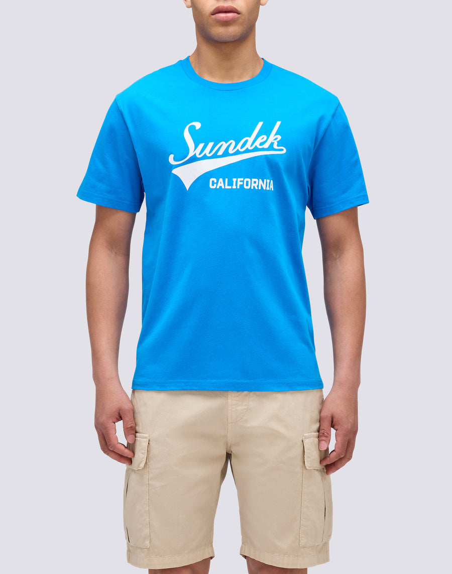 Add a lively touch to your look with our half-sleeve men's T-shirt. Made of soft cotton and embellished with SUNDEK CALIFORNIA lettering on the front, this T-shirt is perfect for casual yet fashionable outfits.