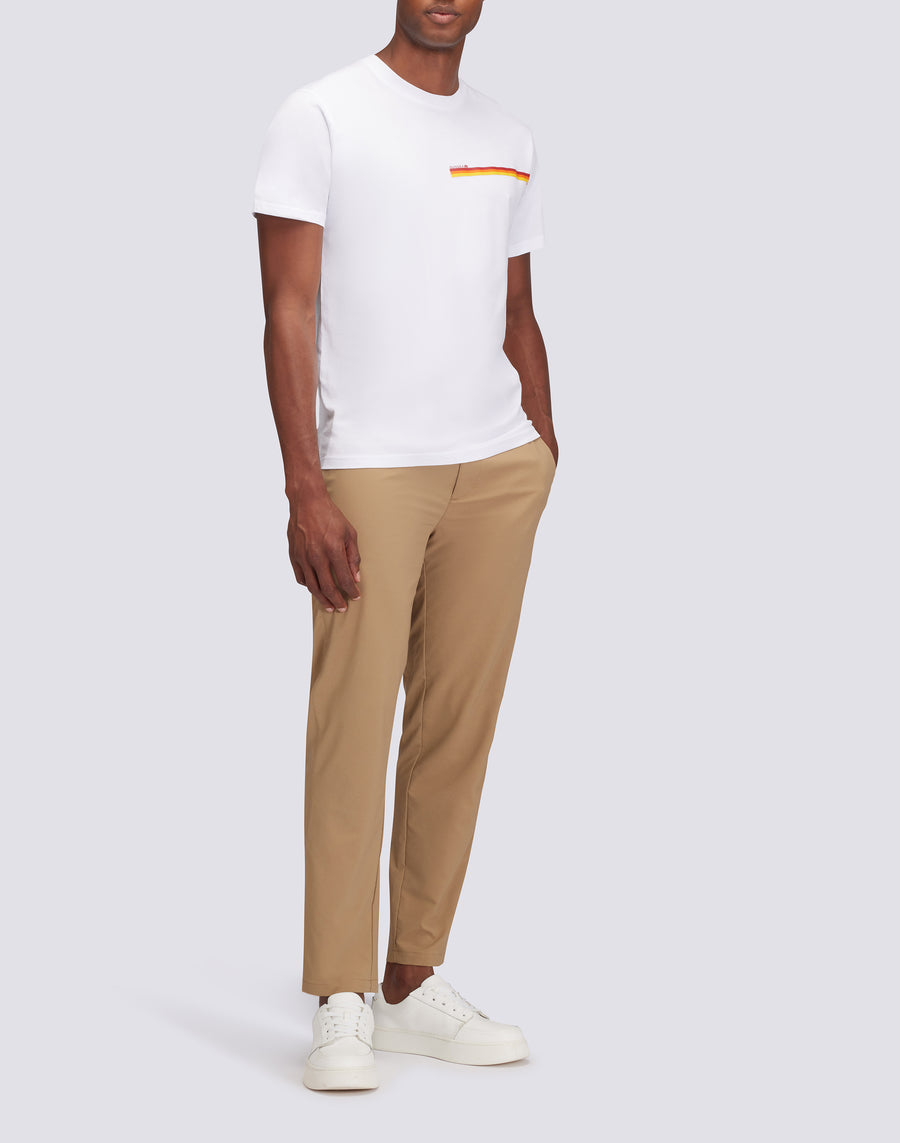 Add a touch to your look with our half-sleeve men's t-shirt. Made of soft cotton and enriched by the tricolour detail on the chest, this t-shirt is perfect for casual yet fashionable outfits.
